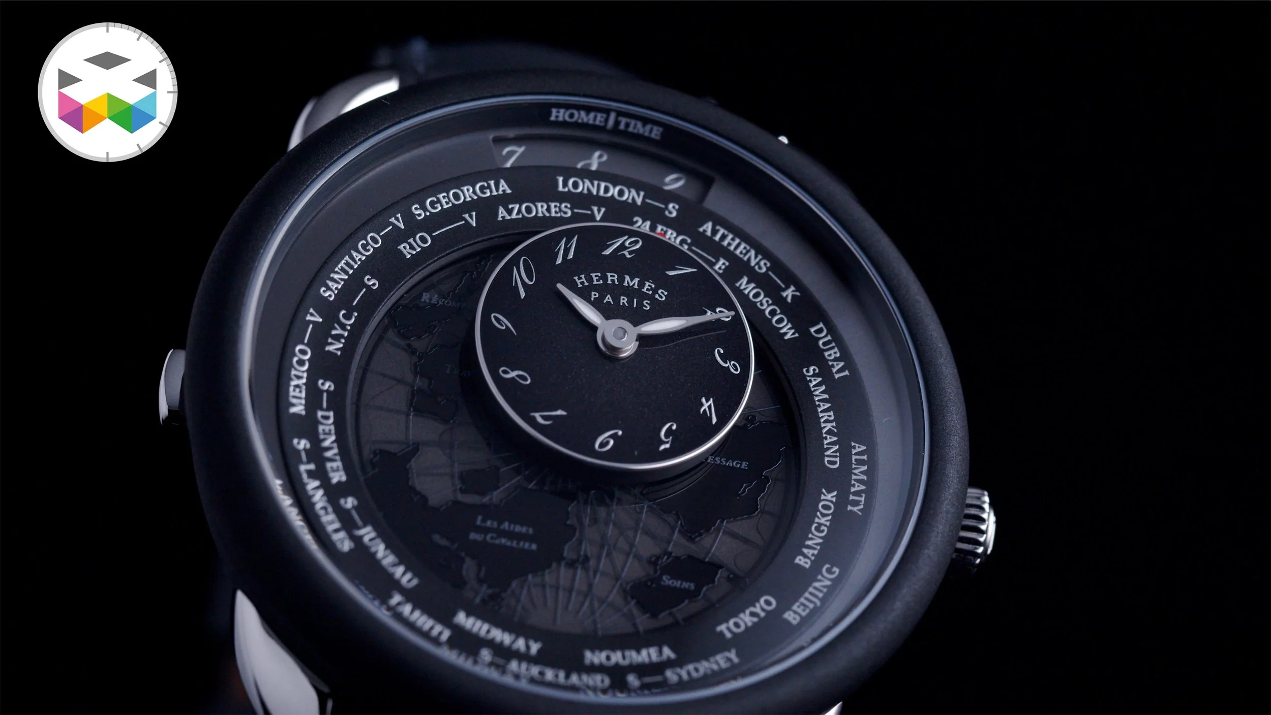 Arceau Le Temps Voyageur by Hermès is a technical marvel. It is a fantastic watch with the unique "Travelling time" mechanism developed exclusively for Hermès showing 24 time zones via a circular disc and a mobile counter. And if you are not quite sure how this timepiece works, then you definitely need to watch this video.